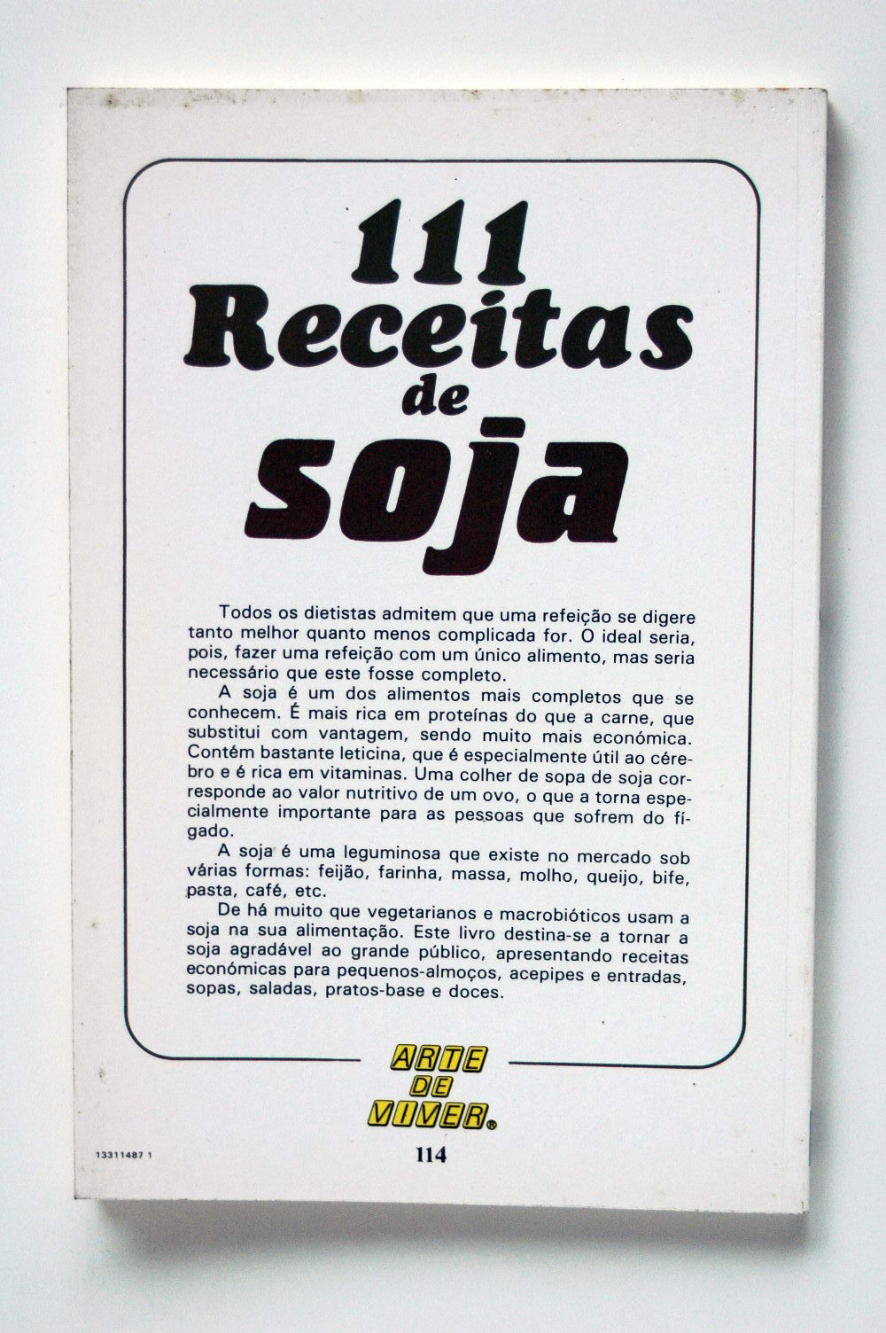 Todos os dietistas admitem que uma refeição se digere tanto melhor quanto menos complicada for. O ideal seria, pois, fazer uma refeição com um único alimento, mas seria necessário que este fosse completo. A soja é um dos alimentos mais completos que se conhecem. É mais rica em protelnas do que a carne, que substitui com vantagem, sendo muito mais económica. Contém bastante leticina, que é especialmente útil ao cérebro e é rica em vitaminas. Uma colher de sopa de soja corresponde ao valor nutritivo de um ovo, o que a torna especialmente importante para as pessoas que sofrem do fígado. A soja é uma leguminosa que existe no mercado sob várias formas: feijão, farinha, massa, molho, queijo, bife, pasta, café, etc. De há muito que vegetarianos e macrobióticos usam a soja na sua alimentação. Este livro destina-se a tornar a soja agradável ao grande público, apresentando receitas económicas para pequenos-almoços, acepipes e entradas, sopas, saladas, pratos-base e doces.